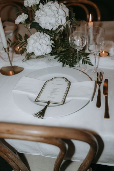 Klassisch schön in weiß und gold. Mit großen Schleierkraut-Wolken.